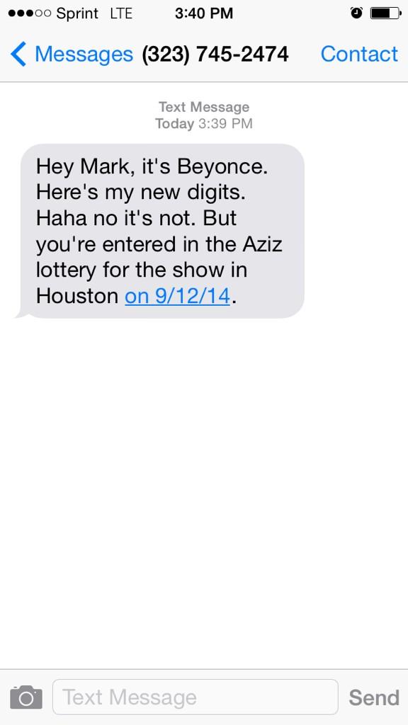 @azizansari I really thought it was Beyonce. Way to get my hopes up.pic.twitter.com/2BElo8r4Yl