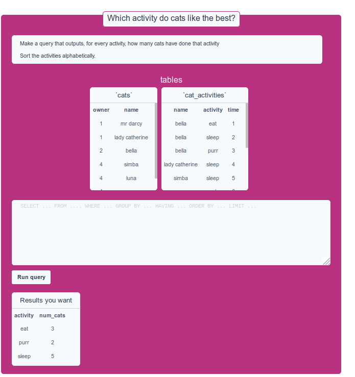 here are a few small challenges to test your understanding of joins: https://joins-238123.netlify.com/join-challenges/ …pic.twitter.com/99lV68nZbg