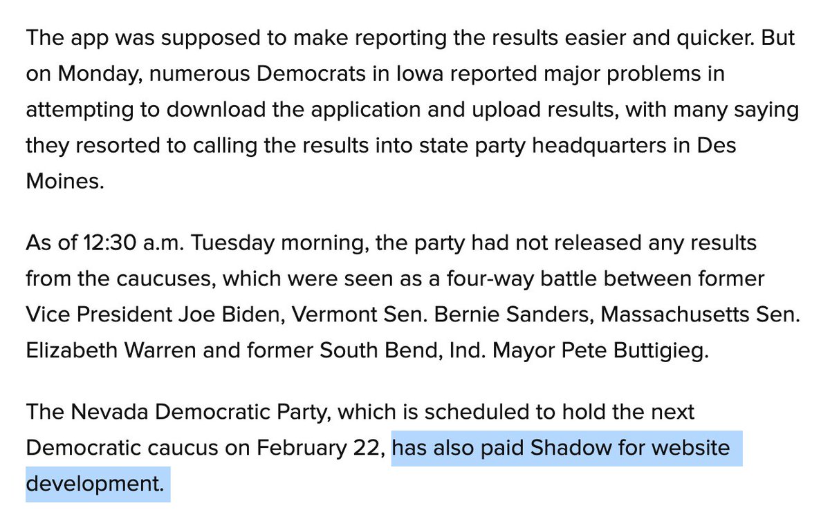 huffpost has reporting on the dem data firm behind the failed app. most notably: it was expensive, and it sure sounds like they're trying to use it in Nevada too https://www.huffpost.com/entry/iowa-caucus-app-shadow_n_5e390191c5b687dacc722824 …pic.twitter.com/tSTEWXoKSN