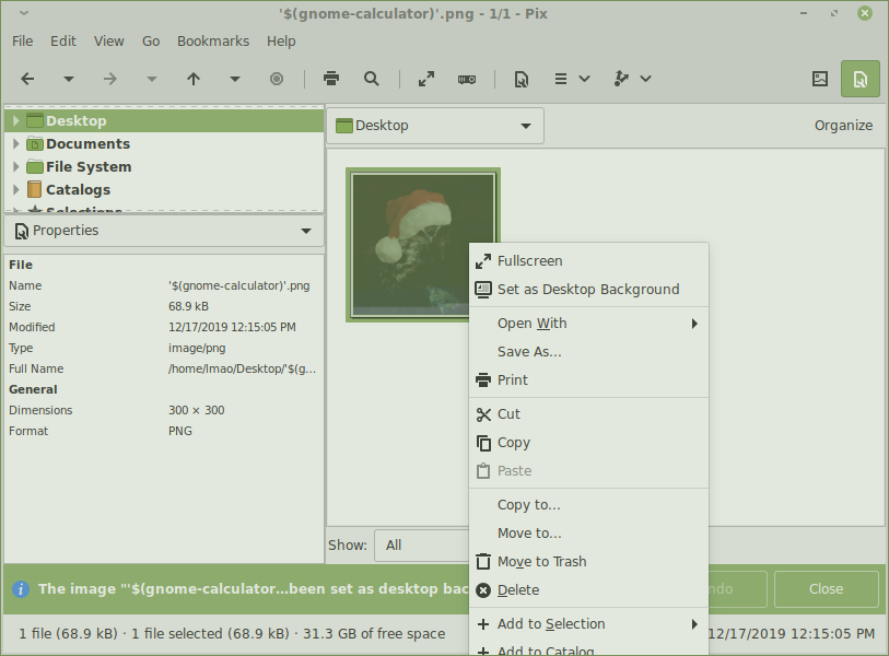 Just found the world's most useless vuln as it only applies to the application `pix` when changing wallpapers in Linux Mint XFCE. Bug: https://github.com/linuxmint/pix/blob/35dc14237f1feafd80ed6b1f778e6b51b3fb980d/extensions/desktop_background/actions.c#L102 …pic.twitter.com/XLkxPRW29A