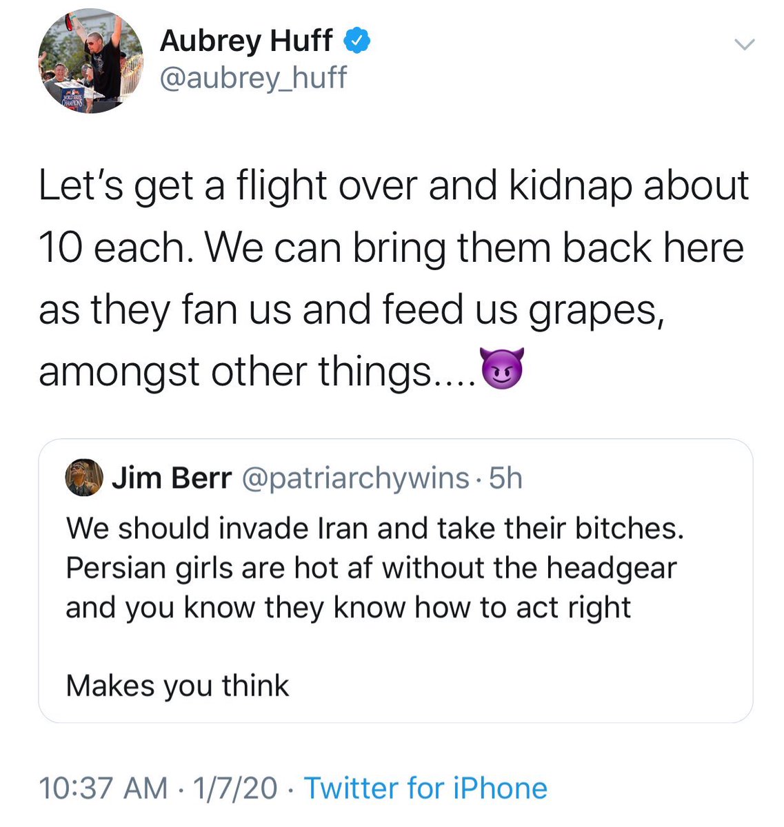 @TwitterSafety these accounts are advocating kidnapping of women. How are they not kicked off twitter? How is this tweet still up?@TwitterEng how hard is it to flag a tweet if you see the words "Bitches" and "kidnap" in the same thread?pic.twitter.com/QoKDgYv2N0