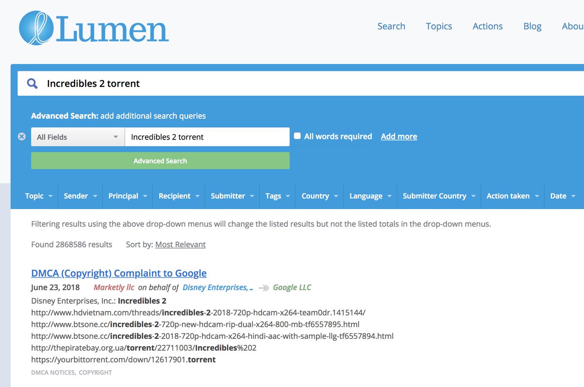 So… who is going to create a chrome extension that checks Lumen and puts "certified by Disney" next to torrents on The Pirate Bay?