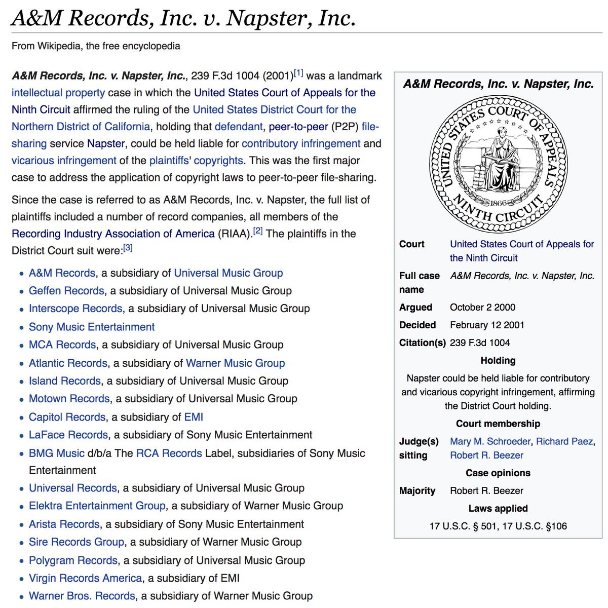 RIAA Breaking Bad: 1997: please shut down your server 2000: everyone who has ever sold music sues Napster 2006: RIAA sues dead grandma and computer-less familypic.twitter.com/xTBbPjQuEr
