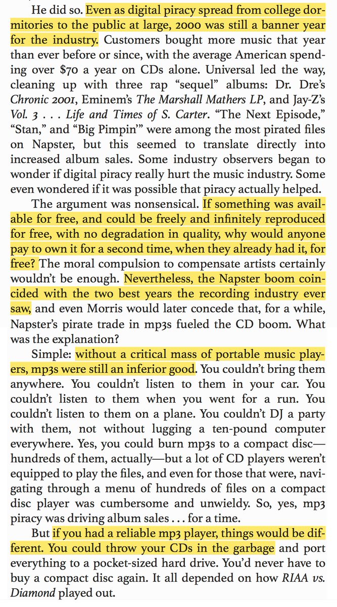 Fun fact: Music industry revenue actually went UP after Napster took off. It didn't start plummeting until the iPod was releasedhttps://twitter.com/backus/status/1006242203050610688 …