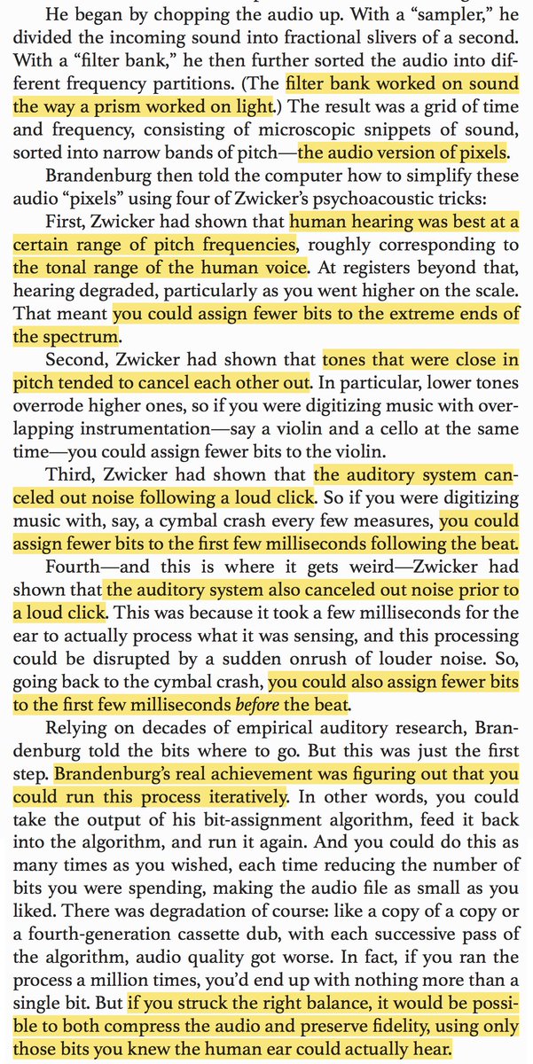 MP3s catalyzed the music revolution by compressing music to 1/12th the original file size. Did you know that a lot of the compression techniques work by reducing the quality of audio that the human ear can’t pick up?https://twitter.com/backus/status/1006958023321870337 …