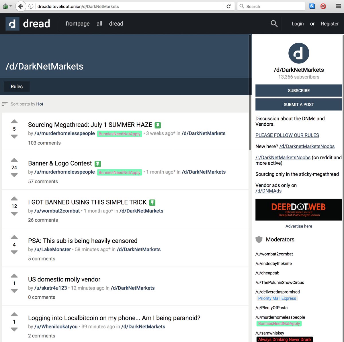 Using Reddit risked revealing your IP/identity. There were market forums on Tor before, so why did people use Reddit? • Familiarity • Speed • Stability • User base By cloning Reddit's UI, Dread minimizes the decentralization penalty indifferent users have to pay