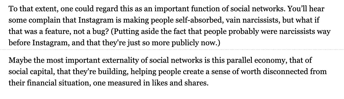 Is it? I feel like social media actually gives us a new currency. What did we have before that, except wealth? Wrote something up about that a while ago that I ended up never publishingpic.twitter.com/tzQ7dPnsC5