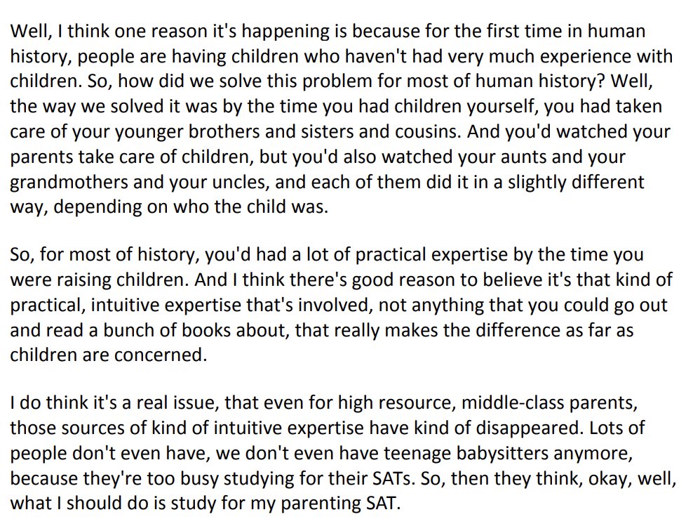 Fascinating point from the latest @RSPodcast episode: For the first time in history, people who haven't had very much experience with children are having children. 👶🍼 http://rationallyspeakingpodcast.org/show/rs-207-alison-gopnik-on-the-wrong-way-to-think-about-parenti.html …pic.twitter.com/bWNFHRPNFp