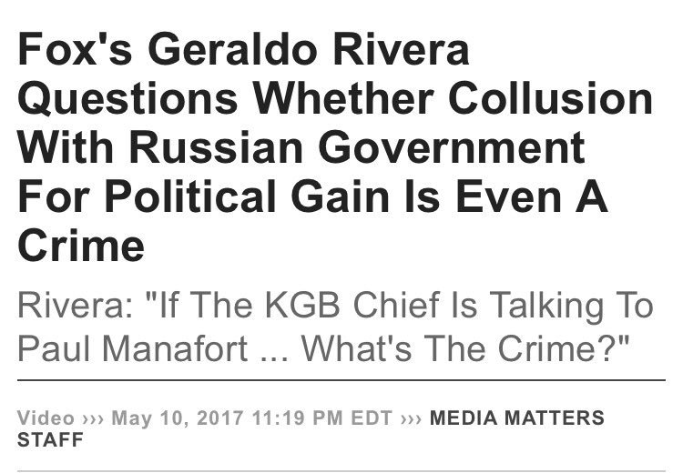 This is the stupidest thing I've heard. Colluding w/a foreign adversary is a crime. @FOXNews are idiots sucking DT for beer $