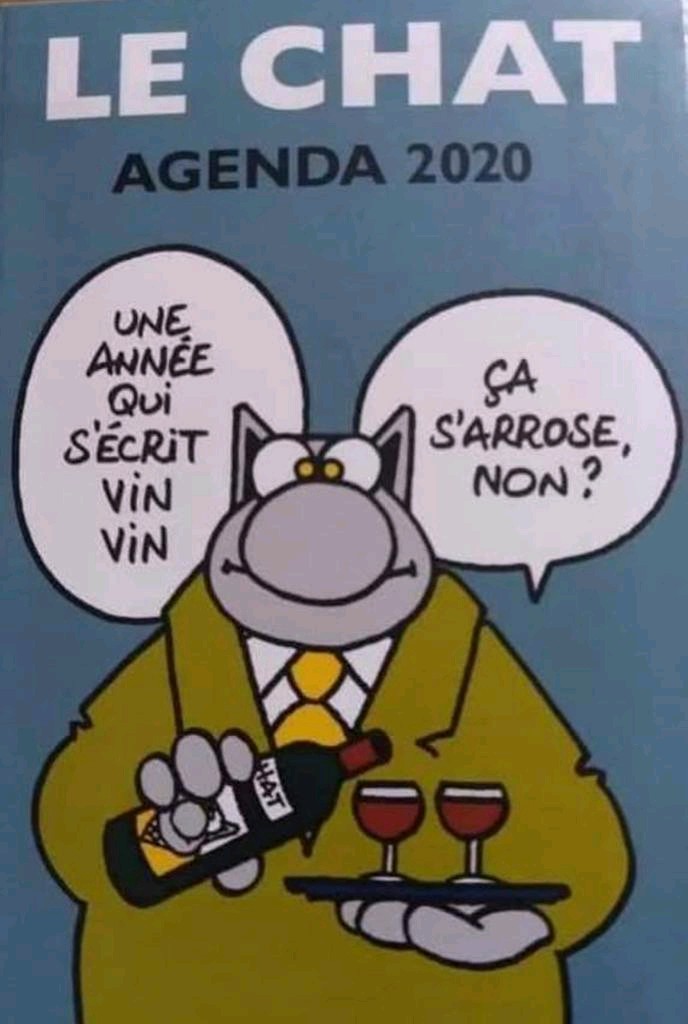 French Cat says: "A year that is pronounced vin vin... that's something to drink to, don't you think?" 20 is pronounced "vin" in French, which is the same sound as that for the word wine.pic.twitter.com/HHa0WZRoaz