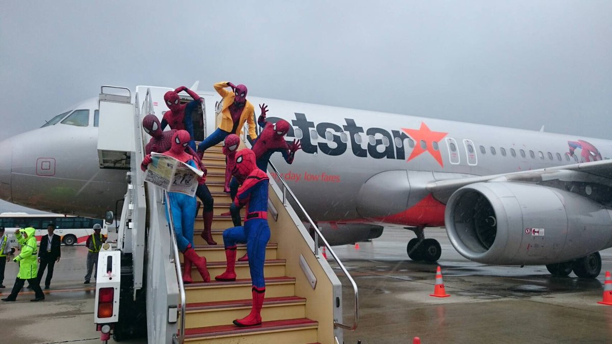#スパイダージェット 初フライト行ってきました! 総勢40名のスパイダーマンがジェットスターに✨ っというわけで本日も元気にオープンしております🍻 さぁ、私はどれでしょう😀😀😀 #bar245pic.twitter.com/Qavj1QCZpe