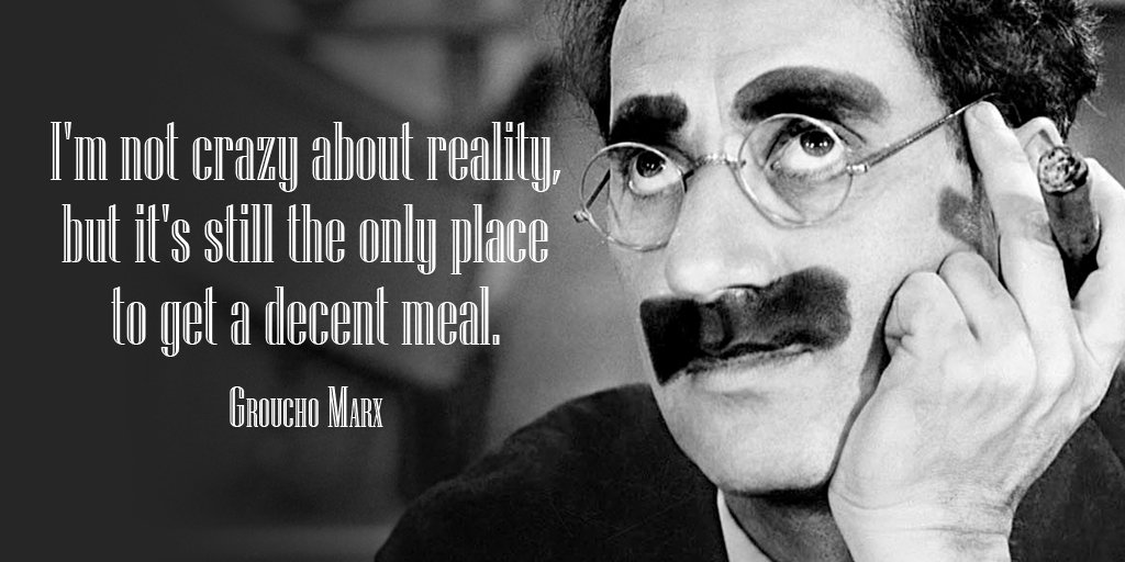 I'm not crazy about reality, but it's still the only place to get a decent meal. - Groucho Marx