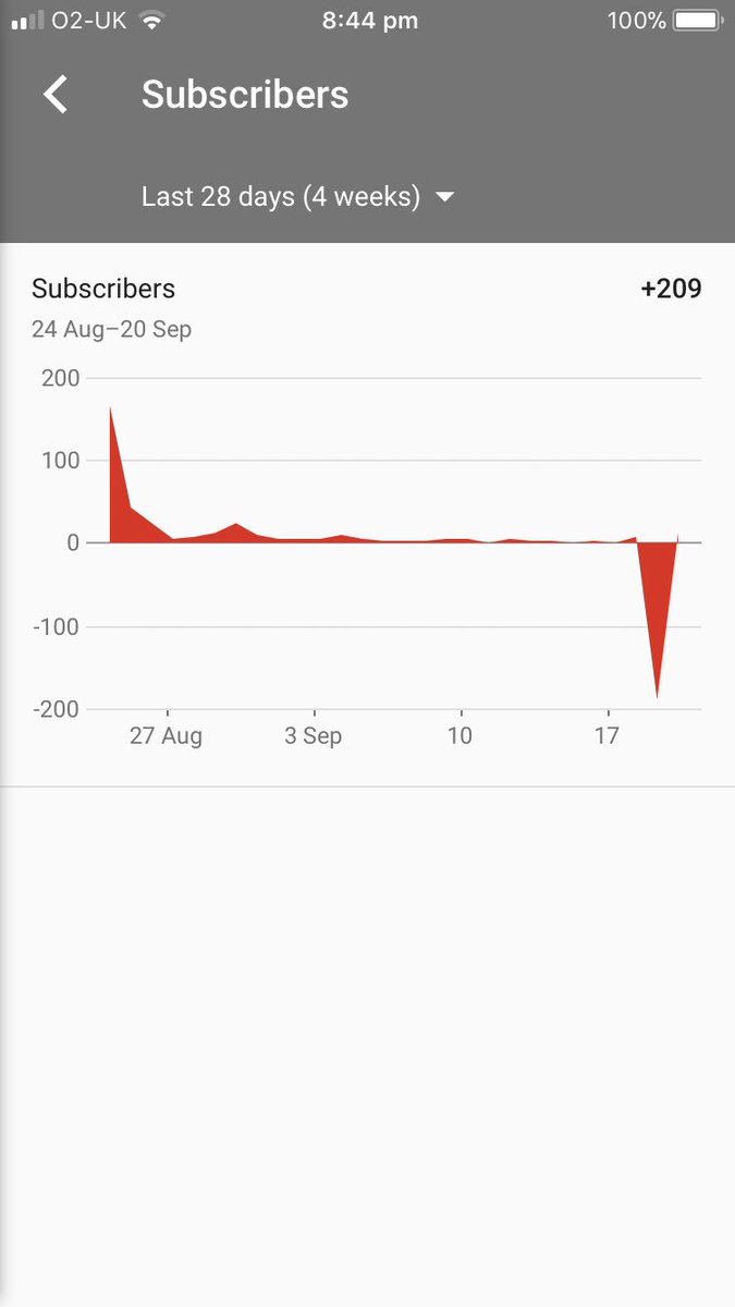 @TeamYouTube why are all my subscribers being automatically unsubbed from me? I’ve fallen from 620 to 267 in the last 2 days and people are asking why they have been unsubbed? #YoutubeHelp
