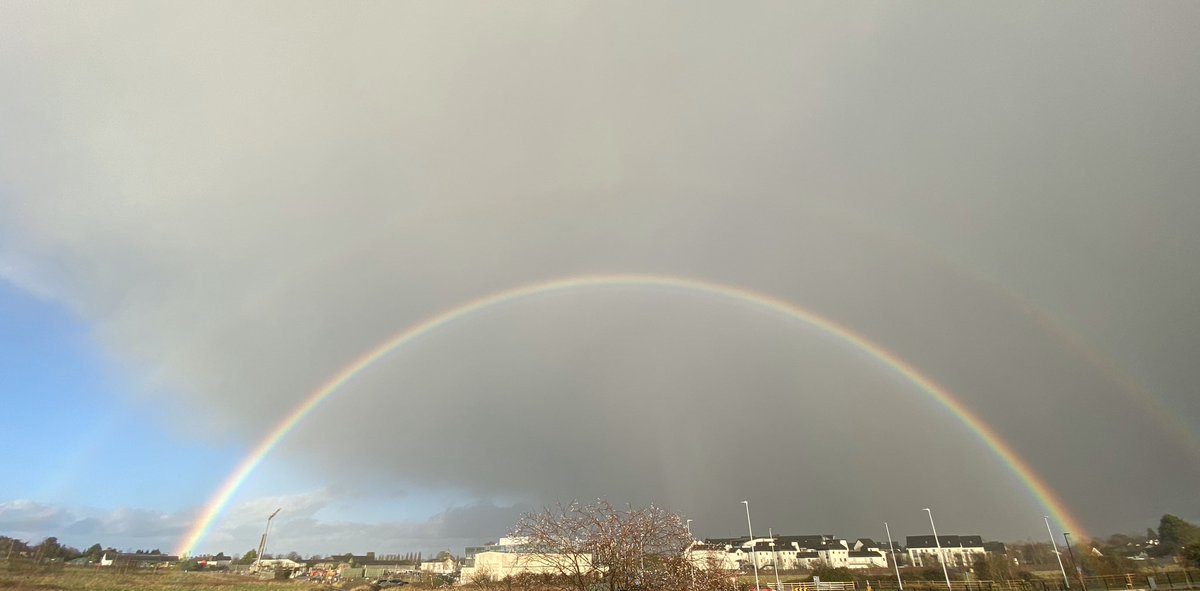 Some of the large weather cells bringing wintry showers and strong gusts, with the odd rainbow, passing over Lough Foyle this afternoon from Donegal