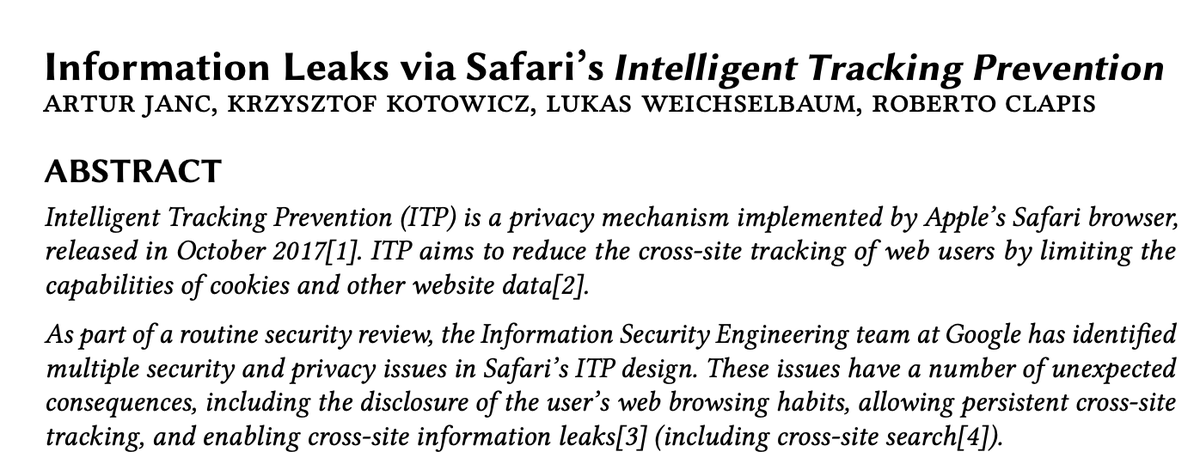 Ouch. The Safari tracking prevention has privacy vulnerabilities allowing worse tracking than what it was trying to prevent. Privacy engineering is *hard*. Honestly, I don't see a robust way around this one, though I haven't had enough time to sit down and really chew on it.https://twitter.com/lukOlejnik/status/1219873289230856198 …