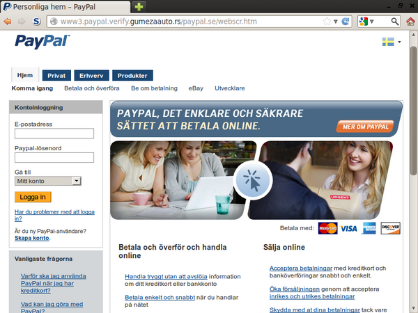 RT @MalwareMustDie: RT @nyxbone: #PayPal phishing site on Swedish language CC: @MalwareMustDiepic.twitter.com/zzB0nFkM66