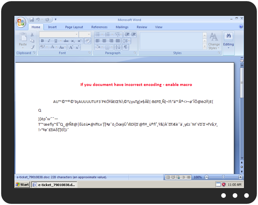 "if you document have incorrect encoding - enable macro" to get #malware infection https://www.virustotal.com/en/file/2f19d5003aea30d4b7be1bc90f5dc0e9047955a18ea2ef72ac7d11e0878afa29/analysis/ …