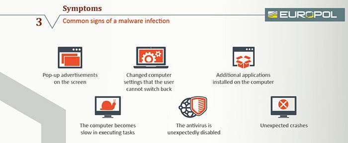 How does a #botnet work? (3) The symptoms - the common signs of a malware infection: #Europol #cybercrime #EC3pic.twitter.com/EBH6lnaY3D