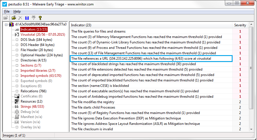 Next #pestudio for a better #malware early triage to provide @virustotal score of hardcoded embedded URLs.pic.twitter.com/eHGwWcQyEh