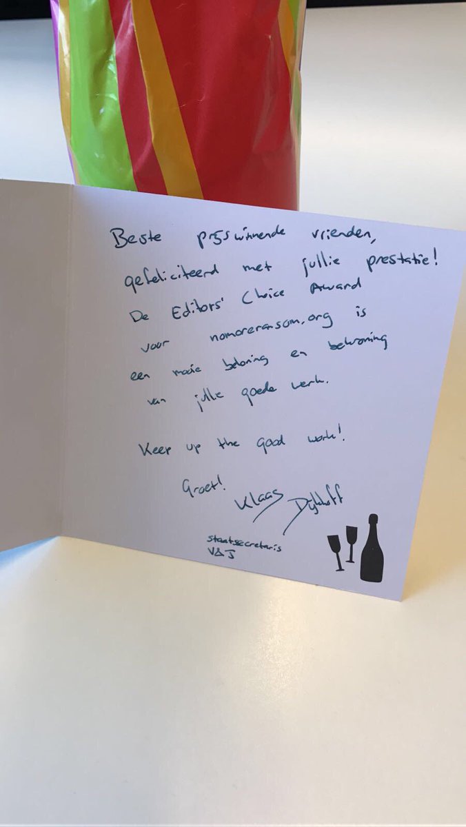 Hartelijk dank @dijkhoff ! We konden dit niet zonder onze partners wo @Kaspersky_BNL @McAfee @Europol @amazon #nomoreransom #SCAwardsEuropepic.twitter.com/JsdbwPjIIa
