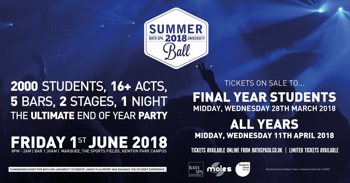 **FINAL YEAR STUDENTS!!** SUMMER BALL 2018 TICKETS are on sale TODAY at MIDDAY and we have a great SUPER EARLY BIRD OFFER for you!! First 200 Tickets have £10 off the Standard Ticket Price, that includes the VIP RECEPTION TICKETS! DON'T MISS OUT!!pic.twitter.com/GymtJjq8wV