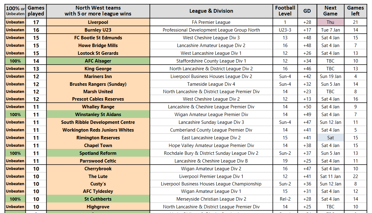 We have a total of 115 unbeaten clubs in the North West at present