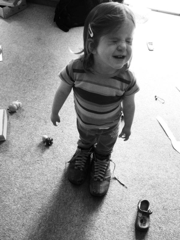 Want to see a small child wearing a grown man's shoes, who's pretending she can't see you? Of course you dopic.twitter.com/ruGcxXMA
