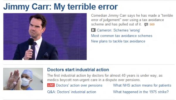 The BBC News homepage makes it look like the doctor is doing something unpleasant to @jimmycarrpic.twitter.com/bXdBYceW