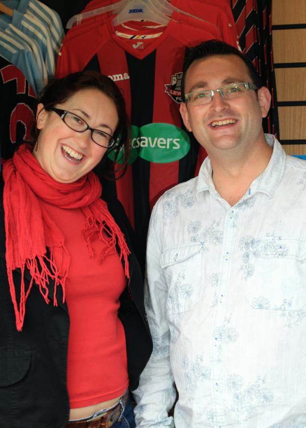 The lovely @Sarah_Lady and @BarryHaffenden manning the @Lewes_cfc club shop, replete with this season’s new kitpic.twitter.com/3rrvKfOq