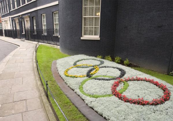 Is this not banned under the copyright regs? @Number10gov: "Pic: Downing Street's Olympic rings flowerbed. @london2012 pic.twitter.com/T1yZvLoh"