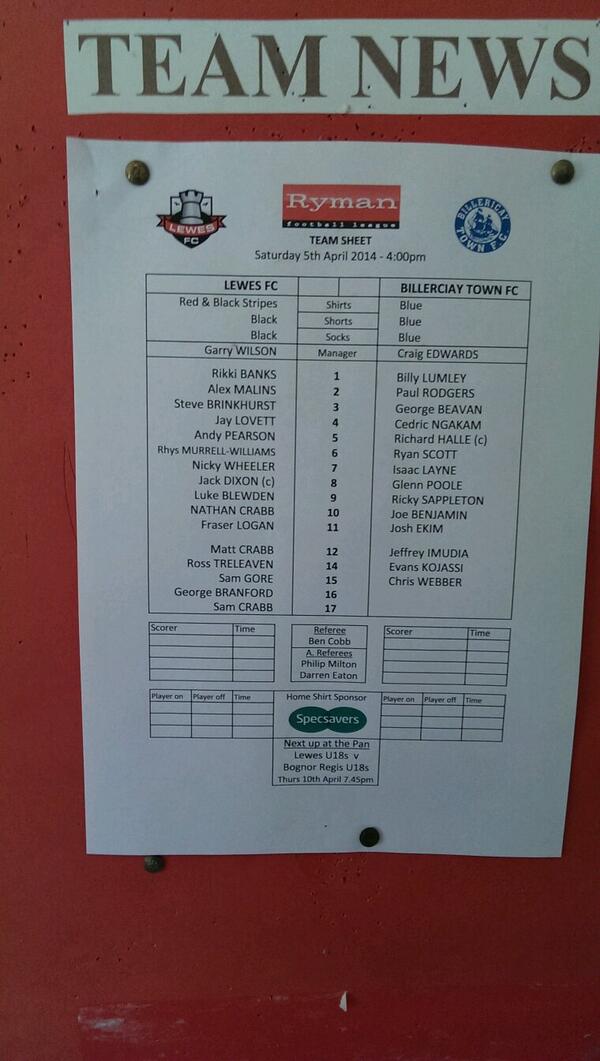 Here are the teams for @Lewes_cfc vs Billericaypic.twitter.com/2gQm9OqkYm