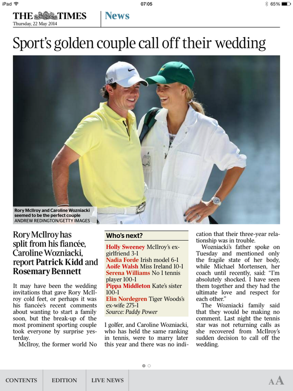 That’s The Times, publishing the odds on who Rory McIlroy’s next girlfriend will be, like a low-rent Smash Hitspic.twitter.com/EvufdaTBvB