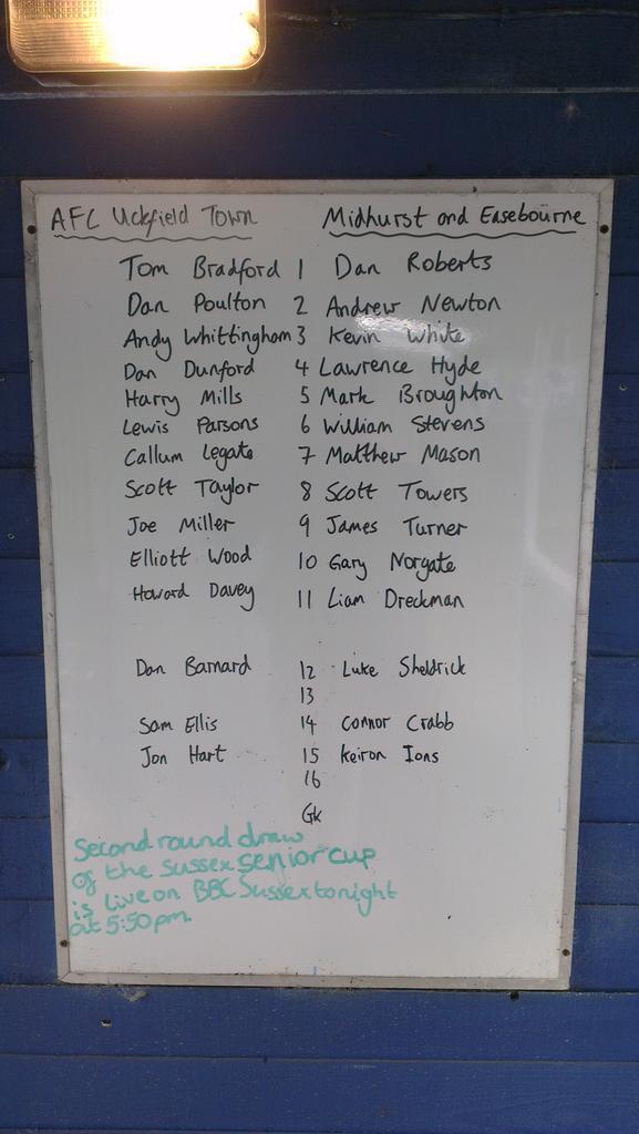 HT @AfcUckfieldTown 1-1 Midhurst. Almost forgot the customary team sheet, here it is...pic.twitter.com/eId47YGTou