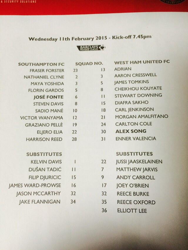 Southampton-West Ham teamspic.twitter.com/M1c9VmDoqo