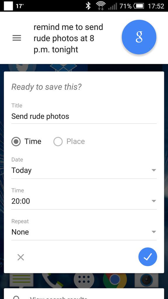 I asked Google Now to remind me to send photos to one my course attendees, Drew. It heard something very different:pic.twitter.com/yjBbGEfY1R