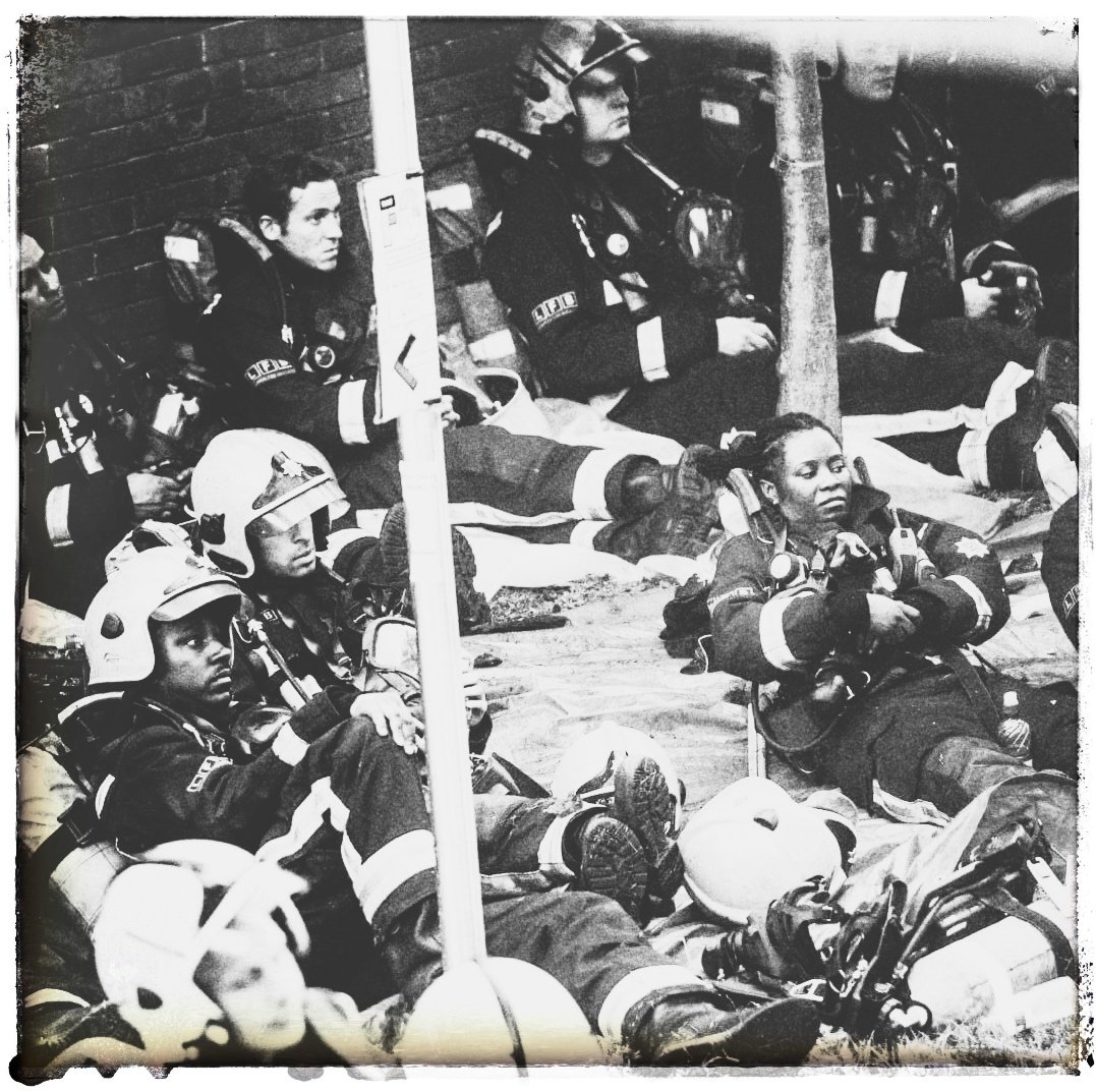 The thousand yard stare on the firefighters' faces is reminiscent of war photographypic.twitter.com/A0WEBJ4VEW