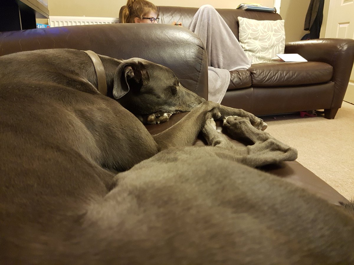 The dog's hoping that, if she keeps her head down, nobody will notice she's on the sofapic.twitter.com/B5CiLeksfv