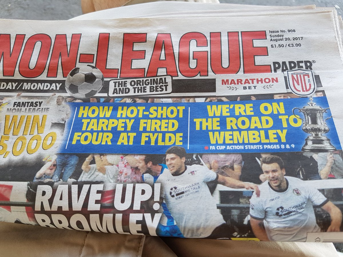Just bought a @NonLeaguePaper at the train station. Like most @SouthernRailUK trains, it's a week late.pic.twitter.com/2uKO79mALb