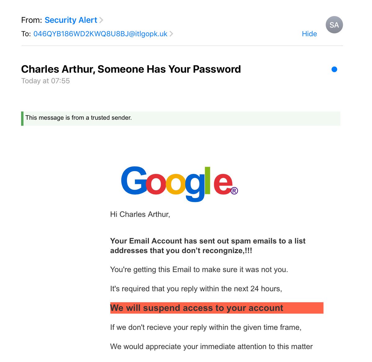 Yeah sure that's my email address, I chose it because it's so memorable and easy to tell people over the phone. But you know what? I'm suspicious of the typography in that Google logo.pic.twitter.com/AWElPZmCSI