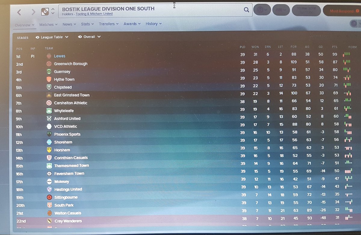 99 points hit in the @Lewes_cfc @darren7freeman FM Challenge with 7 games to go. Easy @bazzacollinspic.twitter.com/Bqpm23wAzF