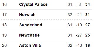 #NCFC beating#NUFC and Sunderland level, here's how the bottom of the Premier League looks as it stands.... pic.twitter.com/hYWSnPp1sj