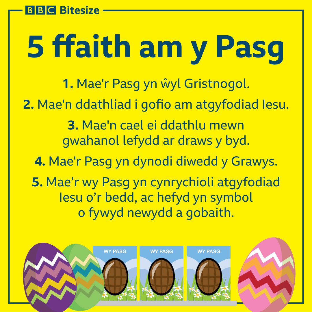 Pam fod pobl yn dathlu’r Pasg, a beth yw ystyr yr wy Pasg? Dyma ychydig o ffeithiau!
