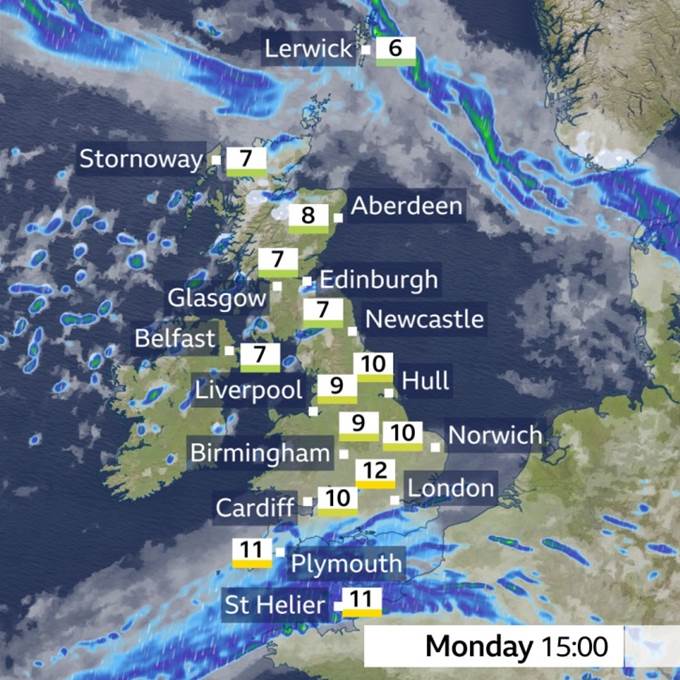 A bright, mild and windy day. Showers in the northwest, some rain developing in southern England. Winds strengthen with gusts 70-80mph west Scotland tonight with some disruption.pic.twitter.com/HJv1LoksvW