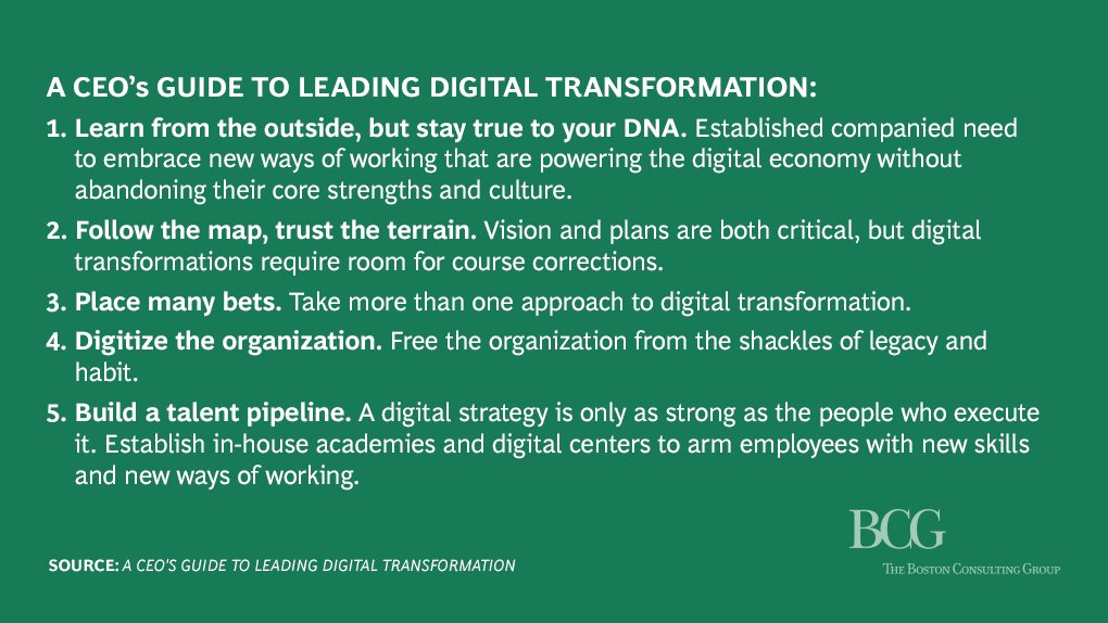 #digital#transformation depends on the organization’s leaders, especially the CEO. http://on.bcg.com/2rWQpk5 pic.twitter.com/x0TMhOCoFx