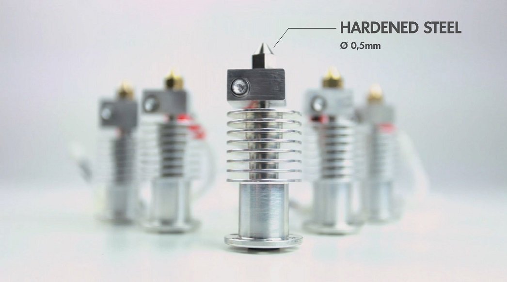 The new high performance hotend is ideal for those materials filled with abrasive metal particles or carbon fibers
