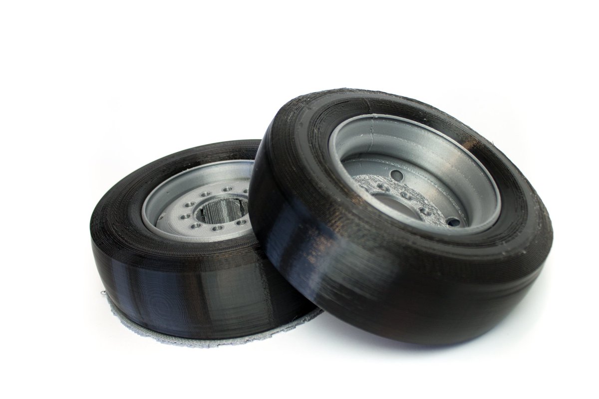 A dual material print of a tyre with