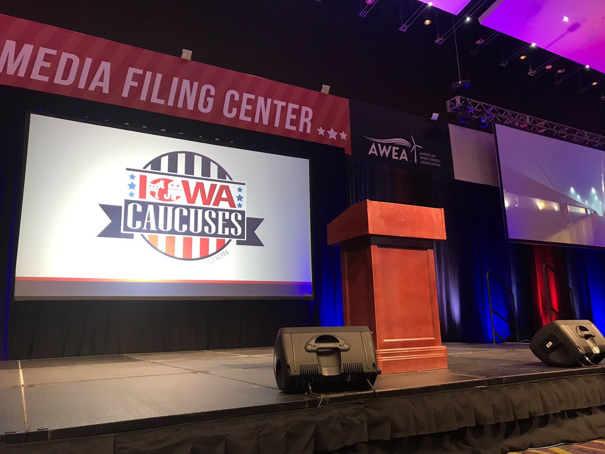 Here at this press filing area for address from Iowa Democratic Party chairman Troy Price. It was supposed to begin at 3:45p central.