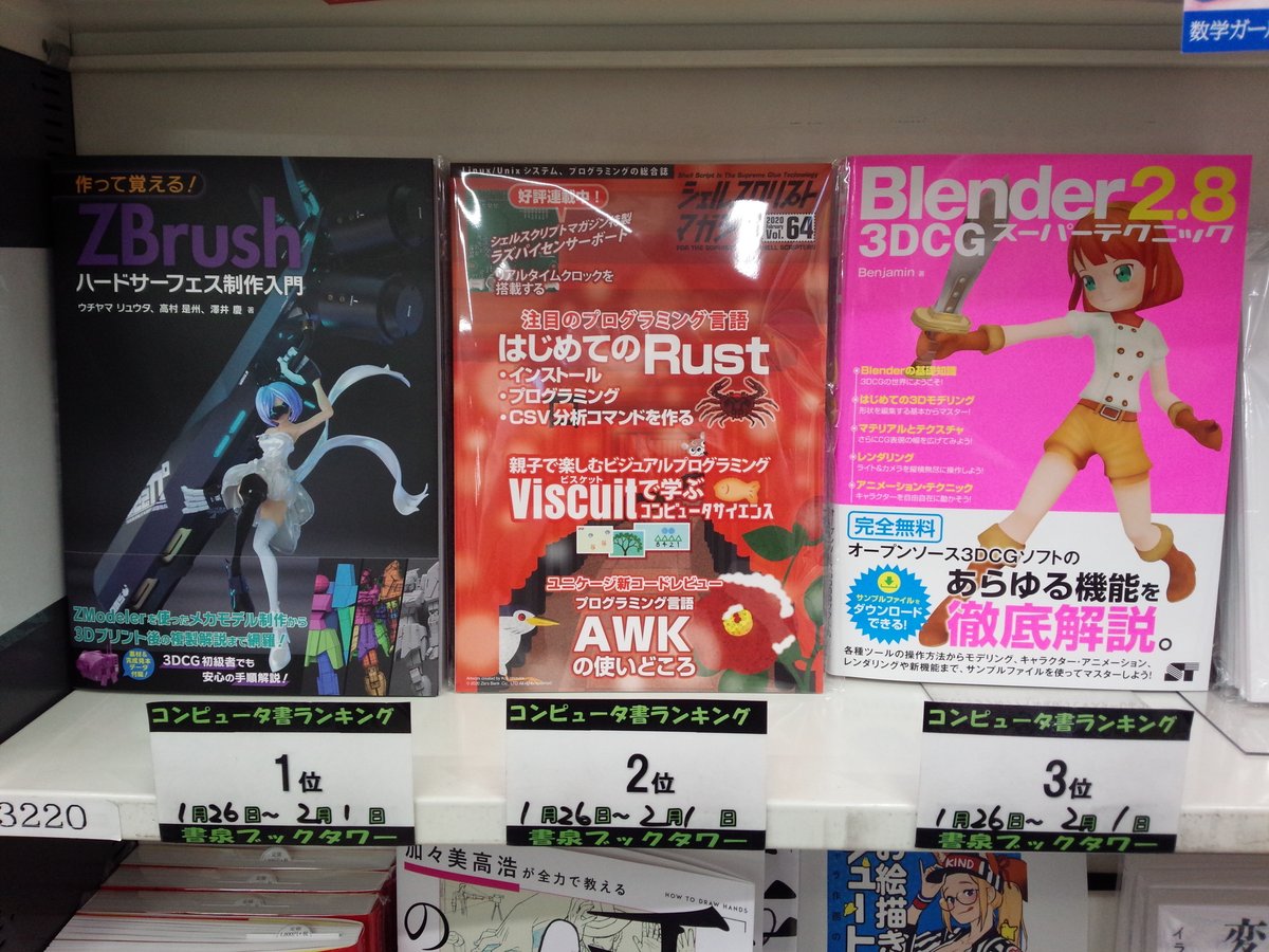 【書泉ブックタワーコンピュータ書ベスト】1/26-2/1付 1位「ZBrushハードサーフェス制作入門」ボーンデジタル 2位「シェルスクリプトマガジン vol.64」USP研究所 3位「Blender2.8 3DCGスーパーテクニック」ソーテック社pic.twitter.com/9ylLVaXBDZ