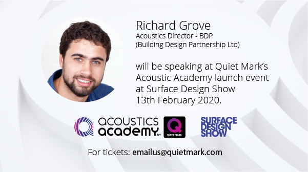 @bdp_com as one of the high calibre line up of speakers at Acoustics Academy launch event, Thurs. 13th Feb. 11:30 - 13:30 The Surface Design Show@surfacethinking Tickets: emailus@quietmark.com#SDS20pic.twitter.com/b8D7oSjJJr